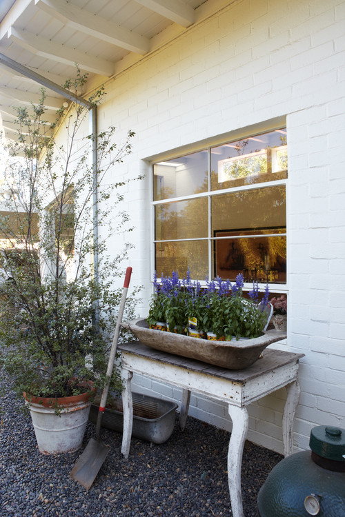 The layout is simple and bare of excess. But the variety of colors, textures, rustic elements and mannerly details makes this space feel cozy and welcoming.